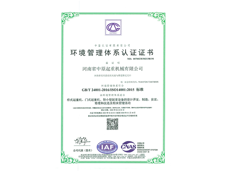 環(huán)境管理體系認(rèn)證證書