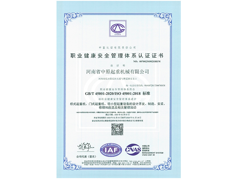 職業(yè)健康安全管理體系認(rèn)證證書