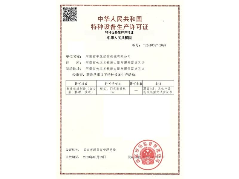 特種設(shè)備生產(chǎn)許可證