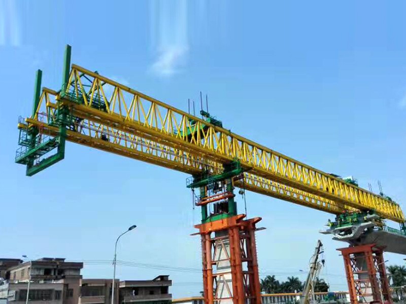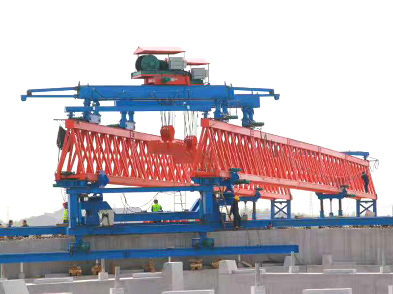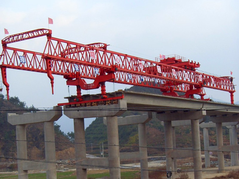 架橋機(jī)就是將預(yù)制好的梁片放置到預(yù)制好的橋墩上去的設(shè)備。架橋機(jī)屬于起重機(jī)范疇,因?yàn)槠渲饕δ苁菍⒘浩崞穑缓筮\(yùn)送到位置后放下。但其與一般意義上的起重機(jī)有很大的不同。其要求的條件苛刻,并且存在梁片上